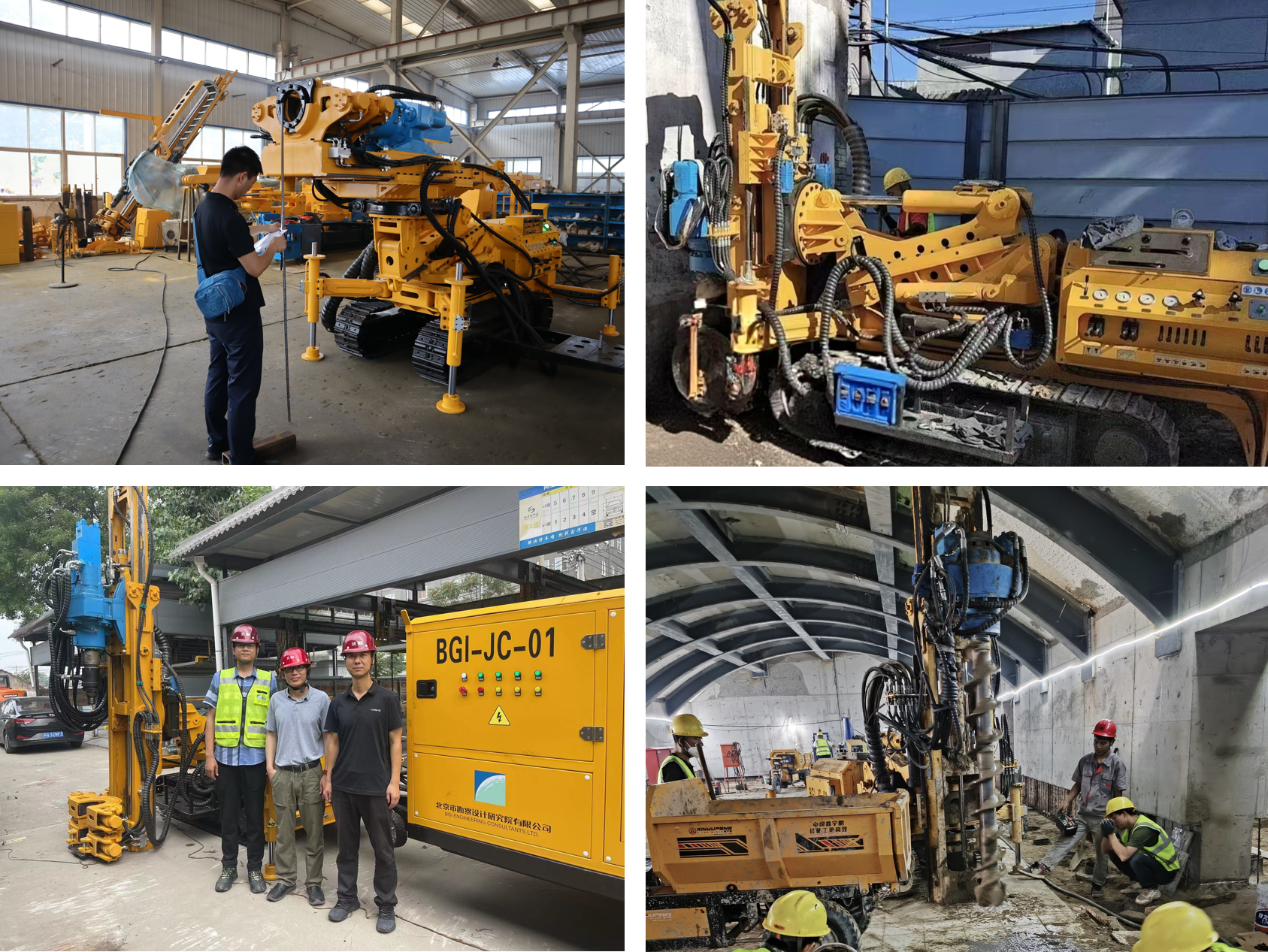 在城市更新行業(yè)背景下,基于傳統(tǒng)設備無法在有限空間施工的痛點,北勘院依托重點研發(fā)項目,精準分析市場需求,集中開展技術(shù)攻關(guān),成功研制了“低凈空多功能鉆機”專利設備,設備兼具大功率、微尺寸、多功能特點,精準定位于低凈空巖土治理作業(yè)難題,形成兩種動力模式下設備及鉆桿鉆具產(chǎn)品體系,為城市更新特殊作業(yè)環(huán)境施工難題提供了新的北勘解決方案。