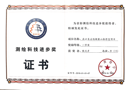 2019年11月3日,“北京測(cè)繪學(xué)會(huì)2019年會(huì)員代表大會(huì)暨科協(xié)學(xué)術(shù)月活動(dòng)”隆重舉行,會(huì)議由北勘院總經(jīng)理、北京測(cè)繪學(xué)會(huì)副理事長(zhǎng)高文明主持。我院“南口采石場(chǎng)裸露山體修復(fù)項(xiàng)目”榮獲2019年度“北京測(cè)繪地理信息科技進(jìn)步獎(jiǎng)”一等獎(jiǎng)。