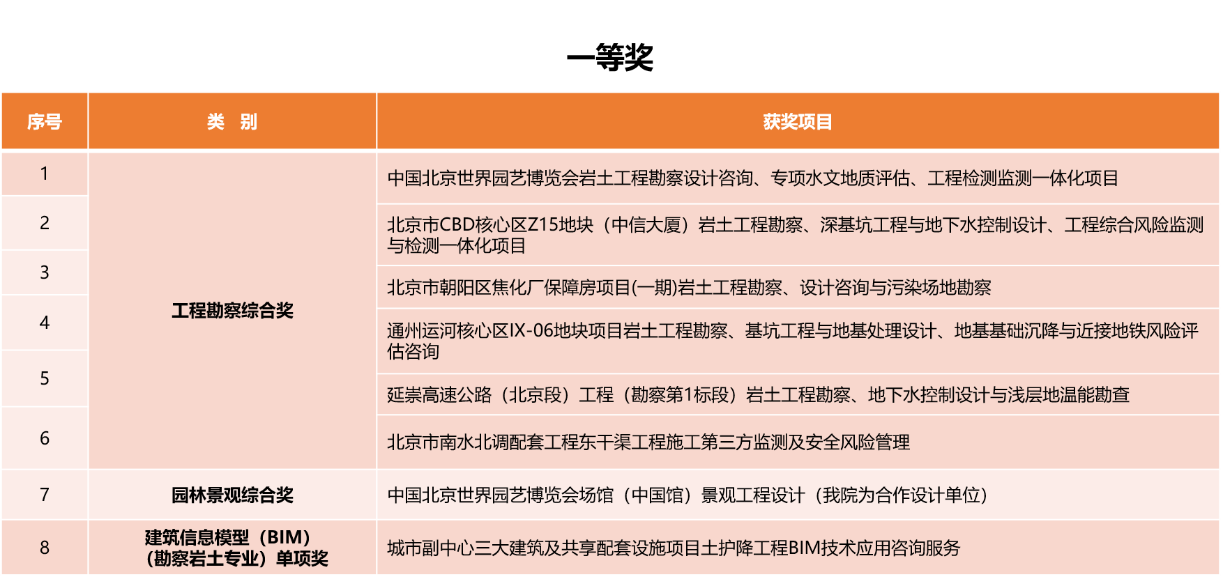 本次獲獎(jiǎng)項(xiàng)目包括北京世界園藝博覽會(huì)、中信大廈、延崇高速公路、北京副中心超高層建筑等我院近年來完成的重大地標(biāo)性工程項(xiàng)目,進(jìn)一步彰顯了我院“為顧客規(guī)避風(fēng)險(xiǎn)、創(chuàng)造價(jià)值”的服務(wù)理念以及不斷突破、打造核心技術(shù)專長的雄厚實(shí)力。
