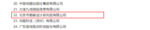 近日,中國地理信息產(chǎn)業(yè)協(xié)會公布2023年地理信息產(chǎn)業(yè)百強(qiáng)企業(yè)名單和2023年地理信息產(chǎn)業(yè)優(yōu)秀工程獲獎項目,北勘院連續(xù)三年獲評地理信息產(chǎn)業(yè)百強(qiáng)企業(yè)(本年度排名第22名),參與的兩項工程獲評優(yōu)秀工程金獎。
