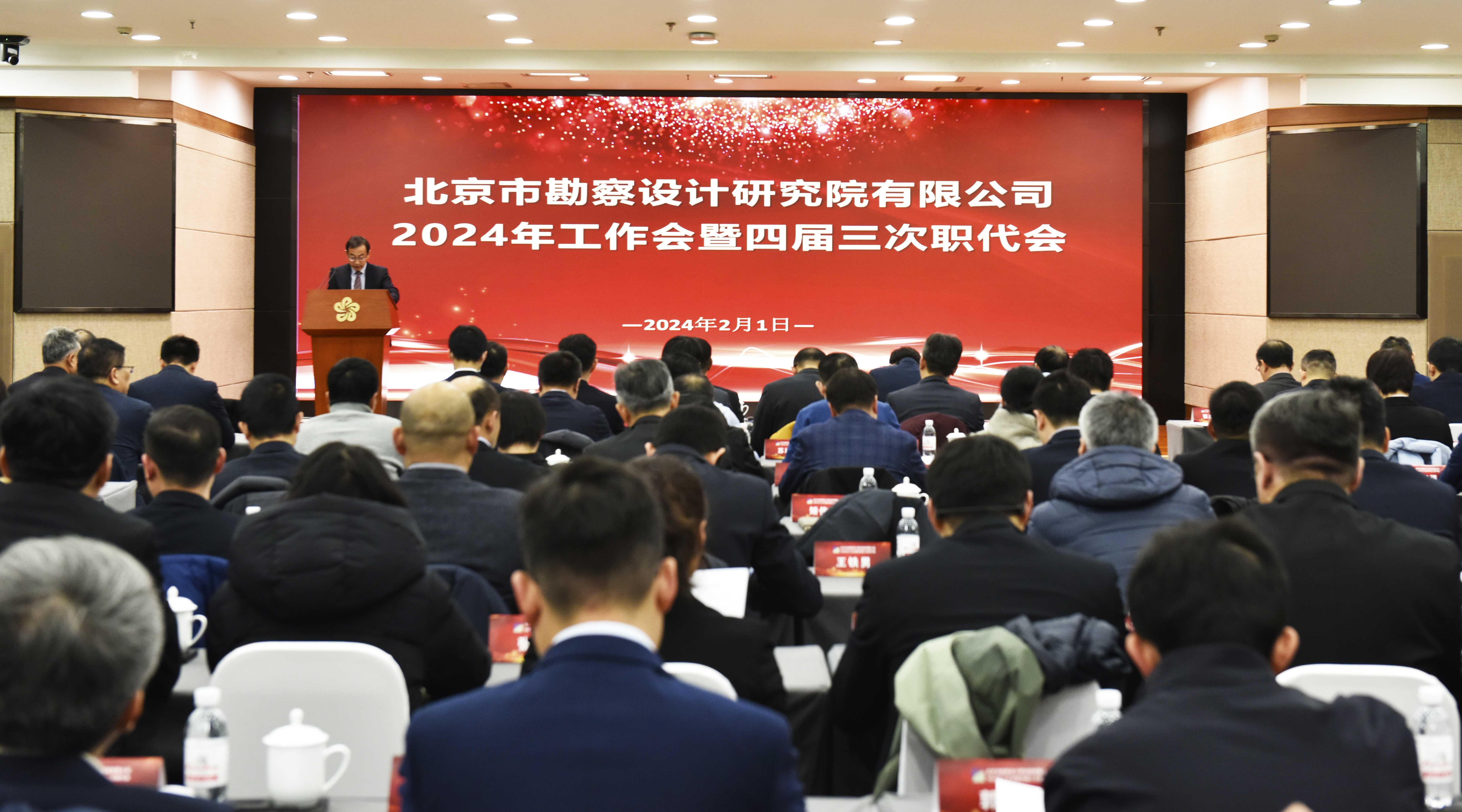 2月1日,北勘院2024年工作會暨四屆三次職代會隆重召開,院本部中高層管理人員、所屬公司管理層及職工代表160余人出席大會,會議由工會主席張運初主持。