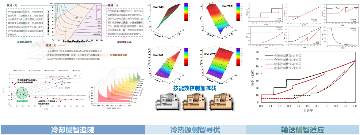 研發(fā)不同供能子模塊及輸送模塊的多種節(jié)能技術(shù)算法和智能控制策略,形成了以“冷卻側(cè)智追隨”“冷熱源側(cè)智尋優(yōu)”“輸送側(cè)智適應(yīng)”為主的多能互補(bǔ)能源站整體節(jié)能技術(shù)體系。