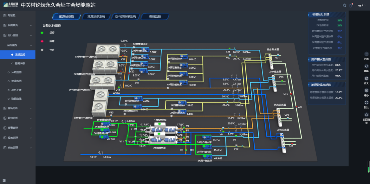 針對(duì)多能耦合系統(tǒng)量身打造的智慧能源管理云平臺(tái),我院實(shí)現(xiàn)能源系統(tǒng)本地智慧控制及云端遠(yuǎn)程管理,可根據(jù)使用對(duì)象和供能需求的不同,選擇最適宜的運(yùn)行模式,實(shí)現(xiàn)能源系統(tǒng)高效低碳運(yùn)行。