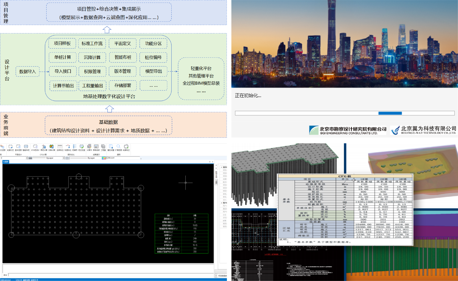 北勘院“地基處理數字化設計平臺”源自正向設計思維,實現了地基處理工程的數字化設計與計算,全面賦能設計全流程,有效提高了設計效率與成果質量。平臺深度融合我院精細化設計理念,緊密圍繞業(yè)務數字化提質增效的核心目標,精耕細作服務工程實踐領域,為傳統業(yè)務的創(chuàng)新發(fā)展注入新活力,為巖土設計業(yè)務的數字化轉型提供了切實可行的解決方案。
