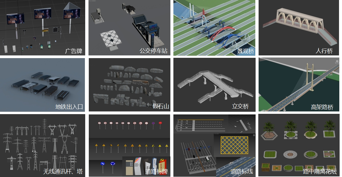 基于行業(yè)分類標準體系,構建了一套涵蓋 90 類標準部件的三維模型庫,覆蓋大部分城市基礎設施。課題對建模全流程進行深度優(yōu)化,從建模軟件的審慎選型,到數據獲取環(huán)節(jié)的嚴謹把控,再到白模構建的精雕細琢,最后紋理映射賦予模型逼真的視覺效果。通過一系列全方位、系統性的流程優(yōu)化,為推動城市管理邁向智能化、高效化的新征程提供了強大技術支撐與創(chuàng)新動力。